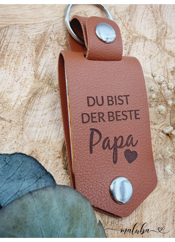 Unser hochwertiger Schlüsselanhänger aus edlem Kunstleder wird individuell nach deinen Wünschen graviert – innen und außen.