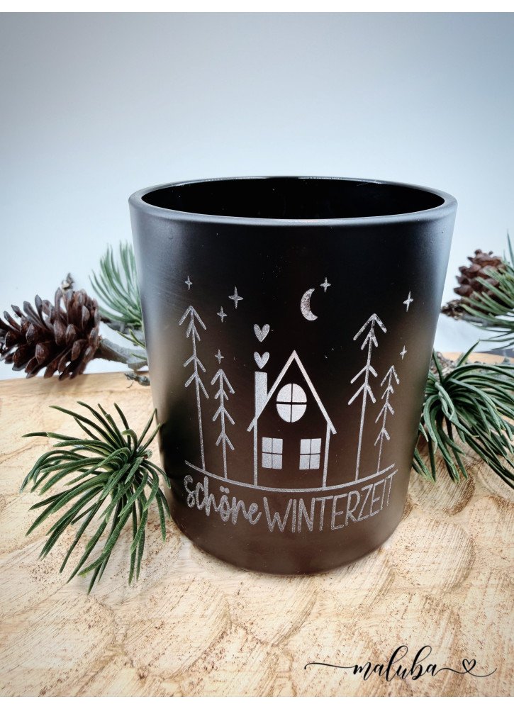 Windlicht aus Glas – Schwarz, mit individueller Wunschgravur